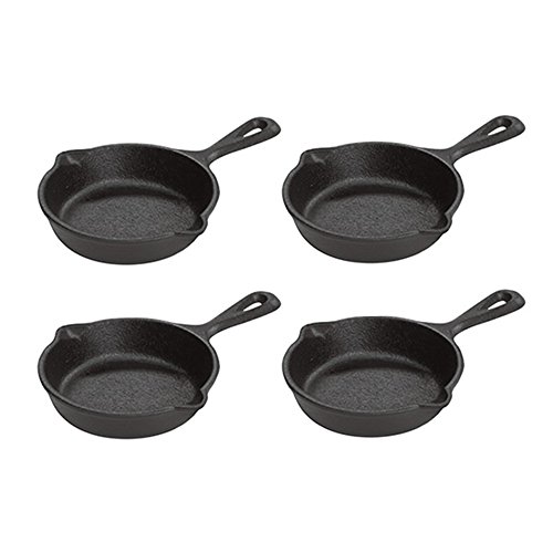 The personal, 3.5-inch skillets adds elegance and versatility to both your kitchen and your campfire. Combined to create amazing table presentation and perfect your baking techniques, the four of these smaller Cast Iron skillets work together allowing you to get creative with side dishes, desserts, and multi-course meals.